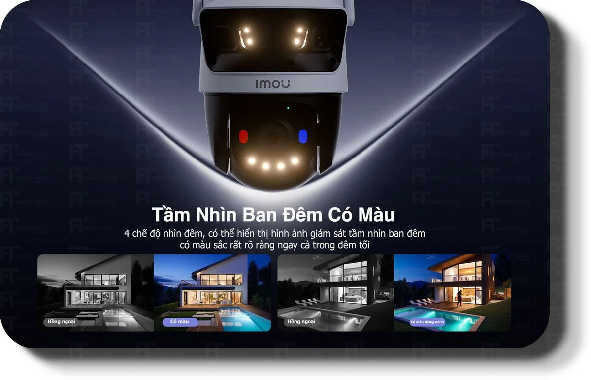 3. Quan sát ban đêm màu – Đèn spotlight + hồng ngoại